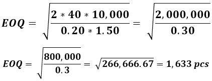 Economic Order Quantity Examples Formula Questions
